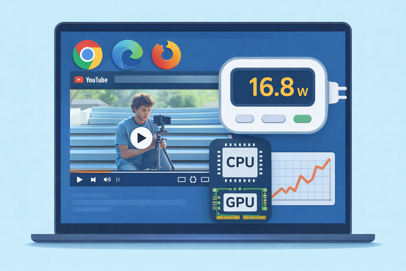 In this project, we analyze the power consumption of YouTube video playback across three browsers (Chrome, Edge, and Firefox) on Windows 11 using an AMD Ryzen 7 4800H, NVidia GeForce GTX 1650ti system. We compare configurations with hardware acceleration enabled and disabled, using average total ...