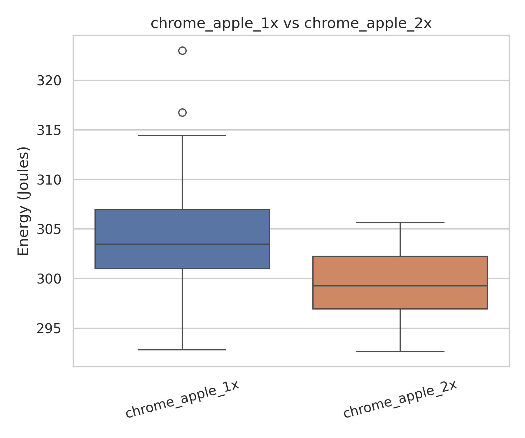 | Chrome - Apple (1x vs 2x) | Welch’s t-test | 0.000583 | Yes |