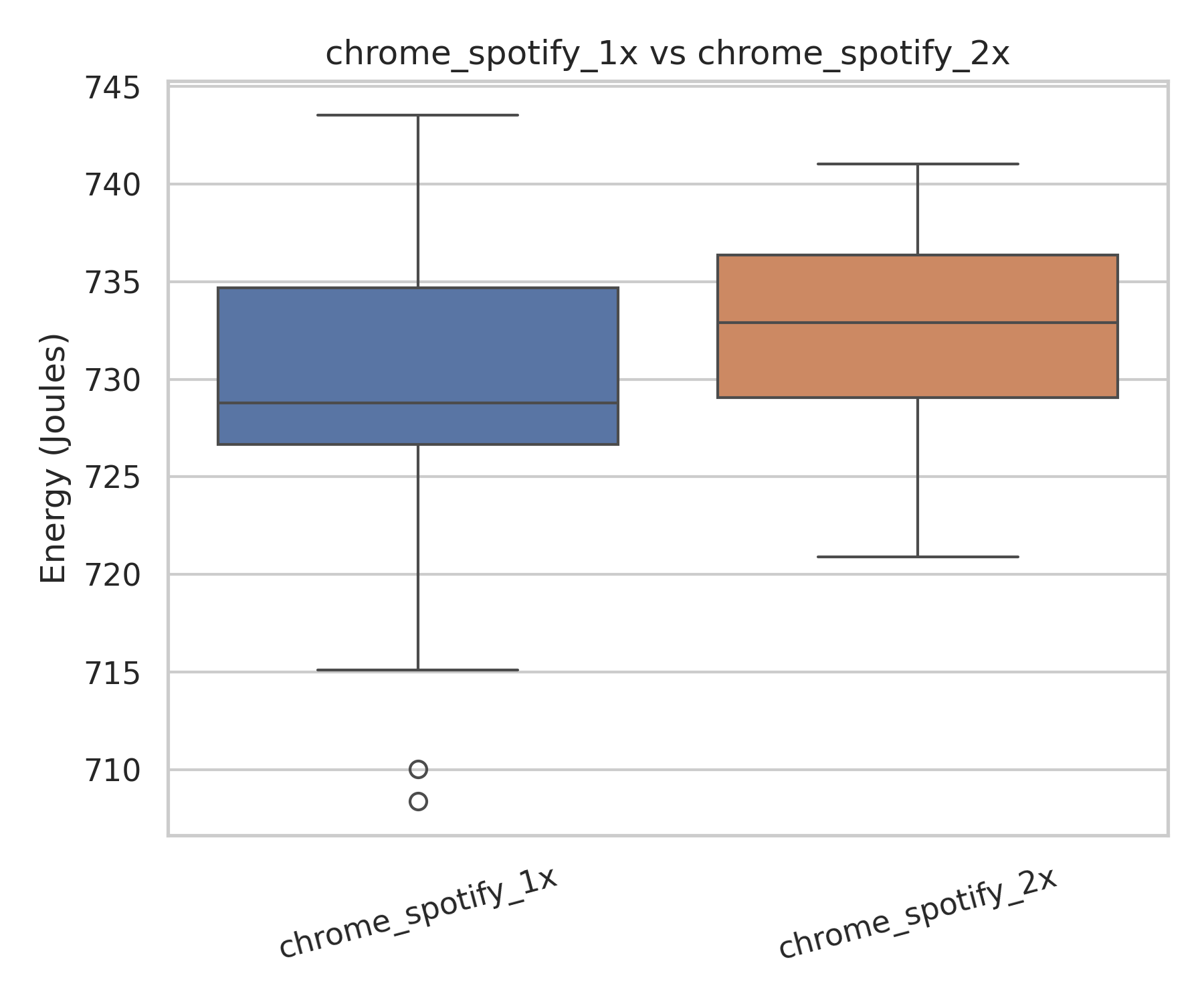 | Chrome - Spotify (1x vs 2x) | Welch’s t-test | 0.057297 | No |