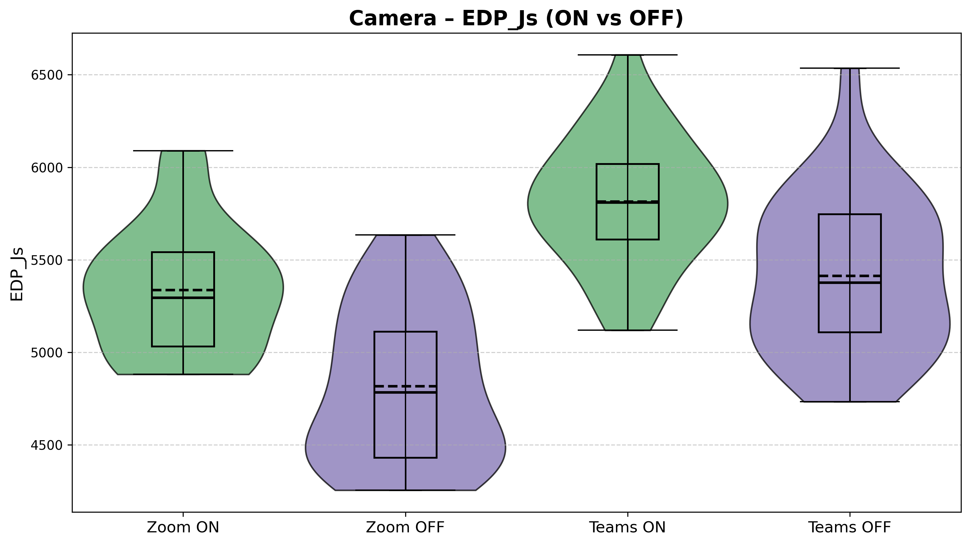 Figure 2: EDP (J*s) values for features camera on vs camera off.