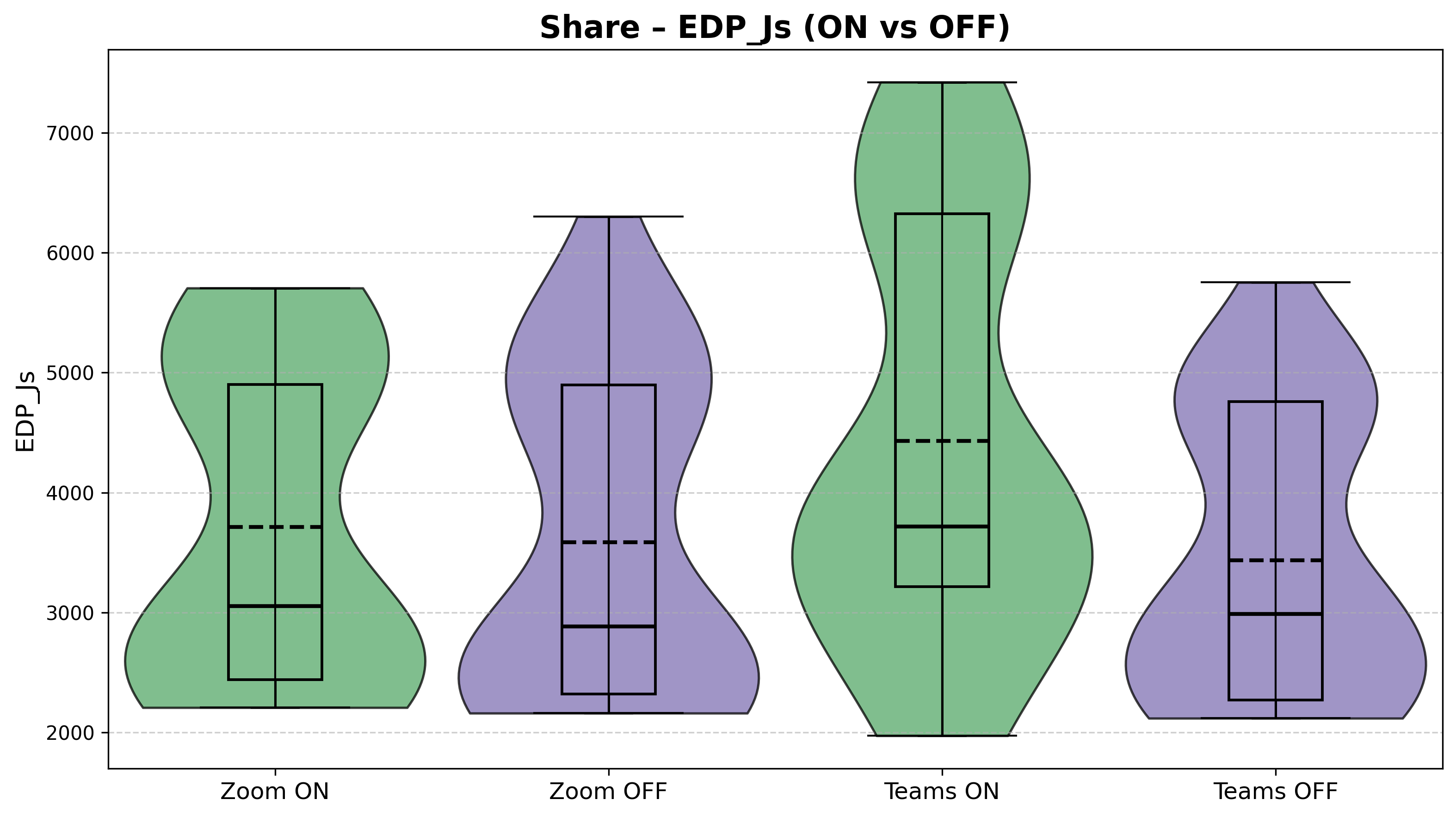 Figure 6: EDP (J*s) values for features screen sharing on vs off.